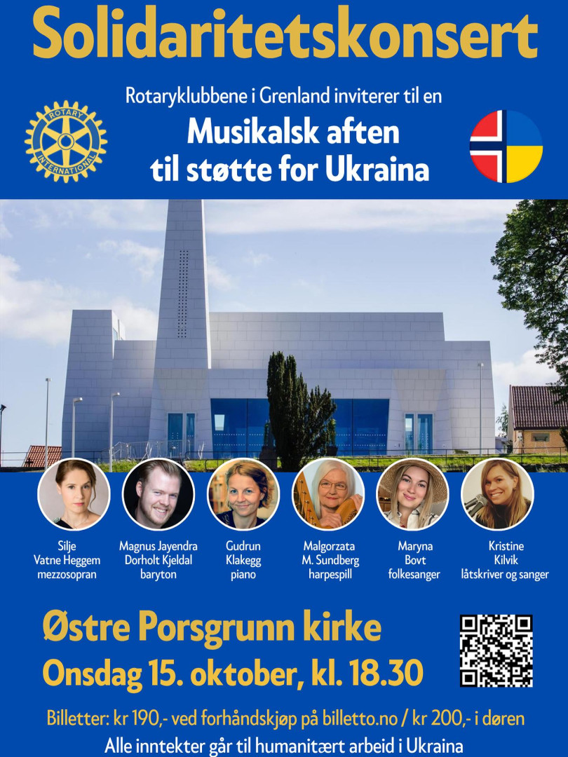 Vi hjelper Ukraina! Rotaryklubbene i Langesund, Brevik, Porsgrunn og Skien.